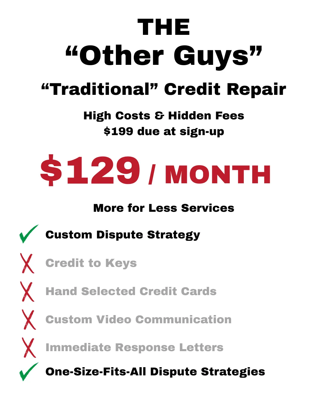 We are not one of those traditional "credit repair" companies that will file unsuccessful disputes for years on end just to be able to collect their monthly fee from you.